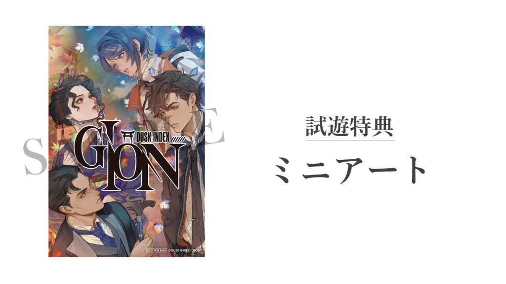 2025.09.19 【EVENT】『東京ゲームショウ2025』試遊出展のお知らせ 2025年9月25日(木)~9月28日(日)に開催の『東京ゲームショウ2025』内コナミデジタルエンタテイメントブース パートナータイトルコーナーにて『DUSK INDEX: GION』初の試遊会を行います! 会場で試遊を体験いただいた方に試遊特典ミニアートをプレゼント! ※混雑状況に応じて、整理券配布や試遊時間の制限などの対応をさせていただく場合がございます。